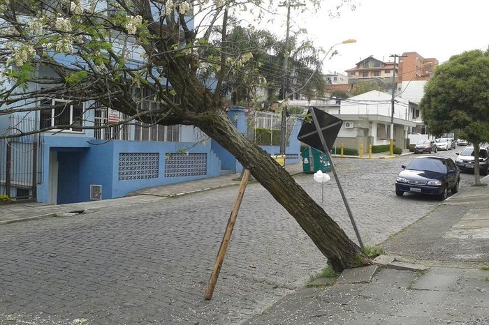 Após chuvas fortes, verifique se há novas fendas no solo ao redor da base e se galhos grandes ficaram pendurados na copa. Observe também se a árvore apresenta uma inclinação que não existia anteriormente, o que indica instabilidade nas raízes saturadas pela água.
